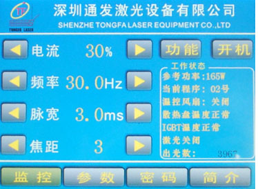 環境濕度:不高于80% 。因為焊機電源打開后,激光晶體就會持續的被冷卻系統冷卻,因為冷卻水一般會低于室溫,當環境濕度過大的時候,而激光晶體的溫度又低于室溫,這時激光晶體的兩個端面上會凝結水霧,當激光輸出的時候,這些水霧會大大降低激光輸出能量,而且這些附著在激光晶體端面上的水,干了以后,會在激光晶體的膜面上留下痕跡,這將會大大加快激光晶體膜面的老化。所以,為了防止這種情況的發生,冷水機的水溫設定,夏天不可以低于室溫3度,冬天不可以低于5度。