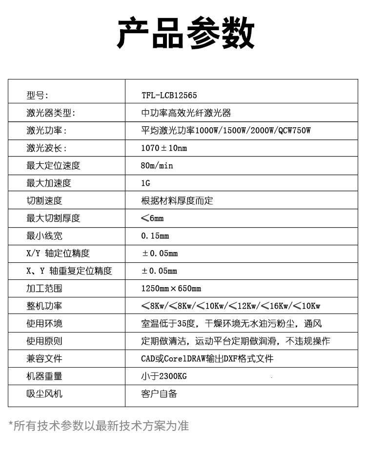 | 激光器最大功 | 500W 1000W 1500W 2000w 3000W QCW750 |